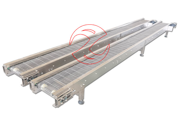 鏈板機的載體是輸送鏈板,也稱鏈板傳送帶。板鏈輸送機傳送裝置中,輸送物料由鏈板鏈牽引件,而承載輸送物品的構件則為鏈板下固定的導板,即輸送機鏈板是在導板上滑行的。板鏈輸送機根據輸送產品需要可設計成轉彎輸送機、提升輸送機、環形輸送機、爬坡鏈板機等鏈板輸送線,根據輸送產品的不同可選擇材質有:碳鋼,不銹鋼201和304材質,鏈板食品輸送機一定要選擇不銹鋼304材質。